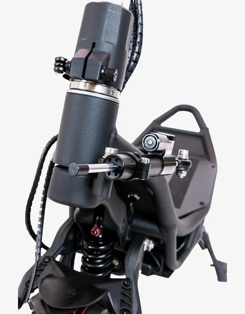 La Nami Burn-e 3 possède une batterie 72V 40Ah ! Son autonomie maximale est de 140 Km. Bridée à 25 Km/h selon la législation en vigueur, une utilisation débridée sur chemins et pistes privés vous permettra de rouler à une vitesse de 100 Km/h. Les contrôleurs sin-wave (2x50A) délivrent une puissance de plus de 8400W. Les accélérations sont monstrueuses mais parfaitement contrôlables grâce au paramétrage des contrôleurs.