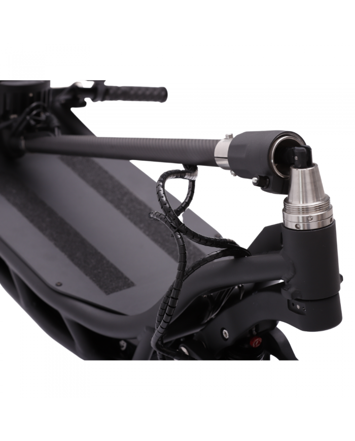 La première chose que l'on remarque sur la Nami Burn-e 3, c'est son châssis tubulaire haut de gamme noir mat. Son gabarit est impressionnant et rassurant. Le guidon est large et la hauteur de ce dernier est idéale, même pour les grands. La batterie et les contrôleurs sont placés dans des caissons résistants aux intempéries et les connecteurs sont étanches. La colonne en carbone est magnifique et les bras de suspensions ajourés affirment le coté racing de ce bolide. La Nami Burn-e 3 est une trottinette électrique au design épuré et les possibilités de personnalisation sont nombreuses.