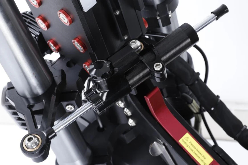 Amortisseur de direction supplémentaire pour rendre la conduite à grande vitesse plus stable et plus sèche.