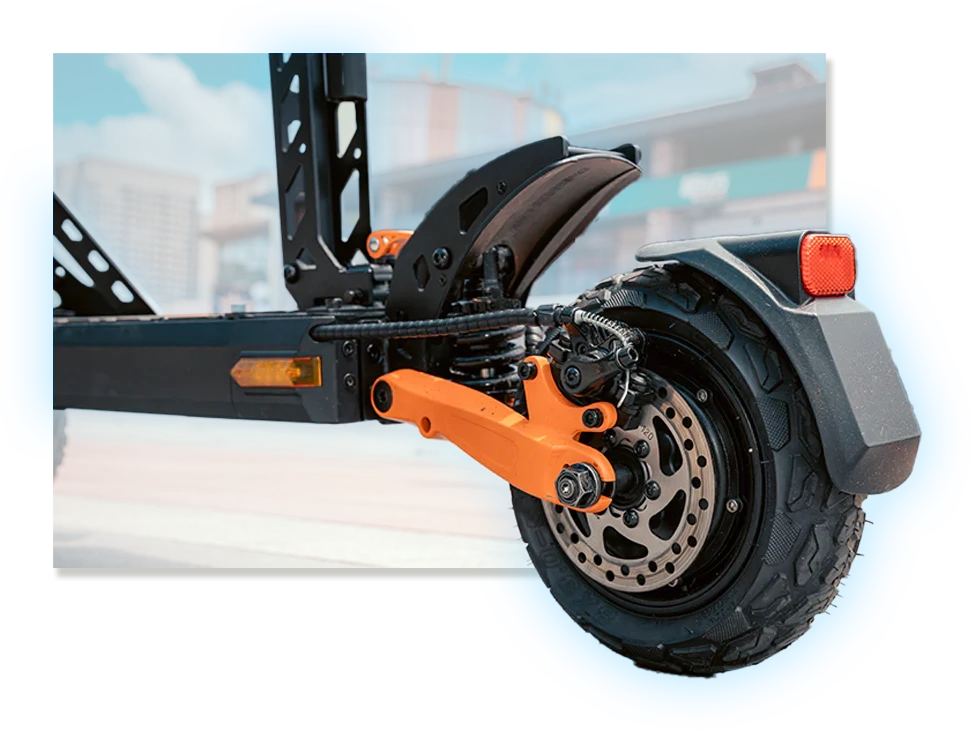Le système d'amortisseur à double ressort finement réglé atténue les bosses sur les terrains accidentés, garantissant une conduite plus agréable sur n'importe quelle route accidentée.