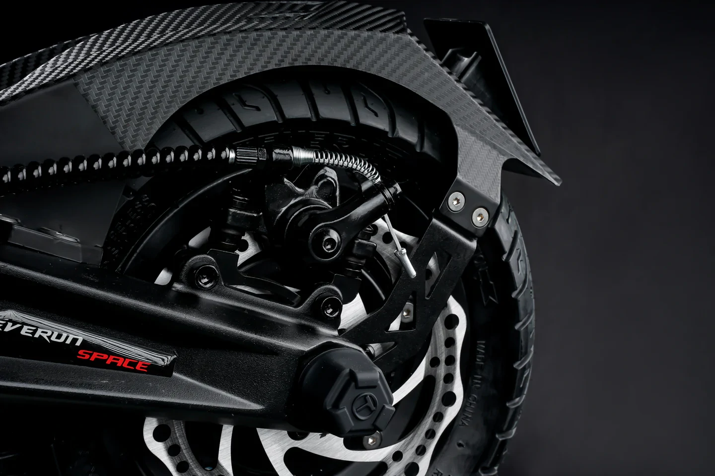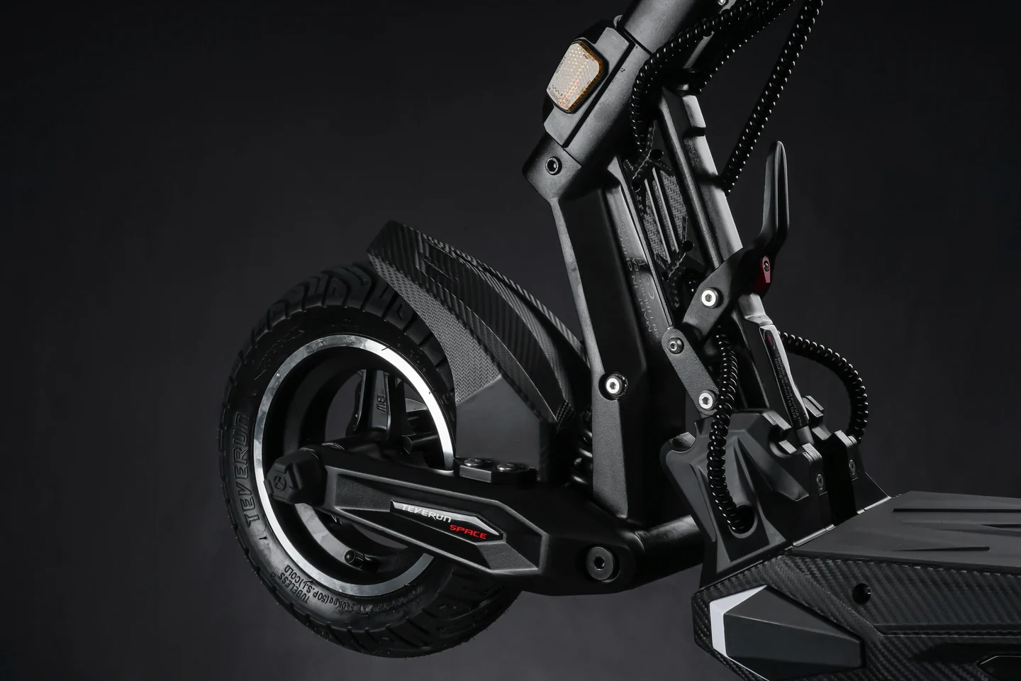 La Teverun Space combine suspensions avant et arrière à ressorts pour absorber les chocs.